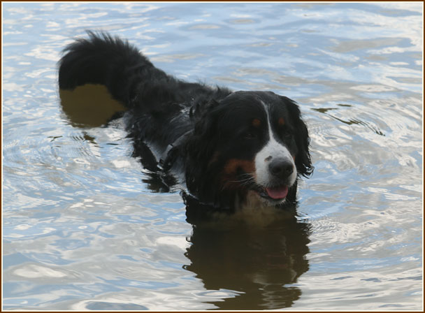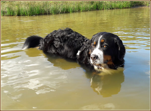 Dshari liebt es, neben Schwimmen auch minutenlang im Wasser zu stehen :-))