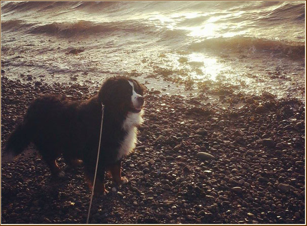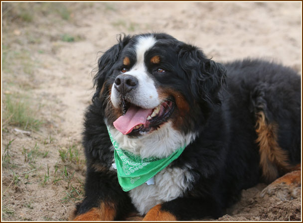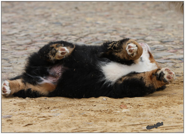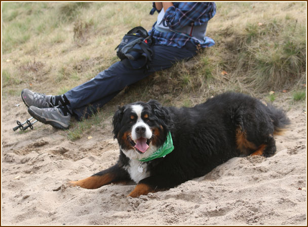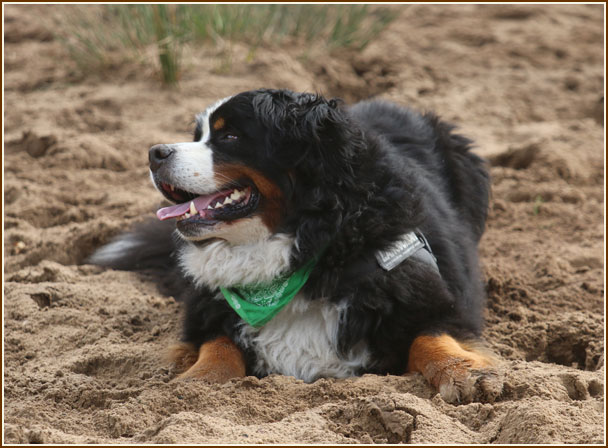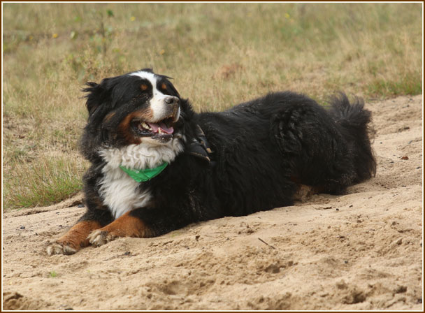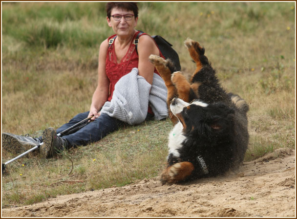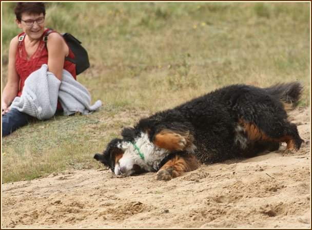 Frauchen, soll ich mal im Sand kullern ?